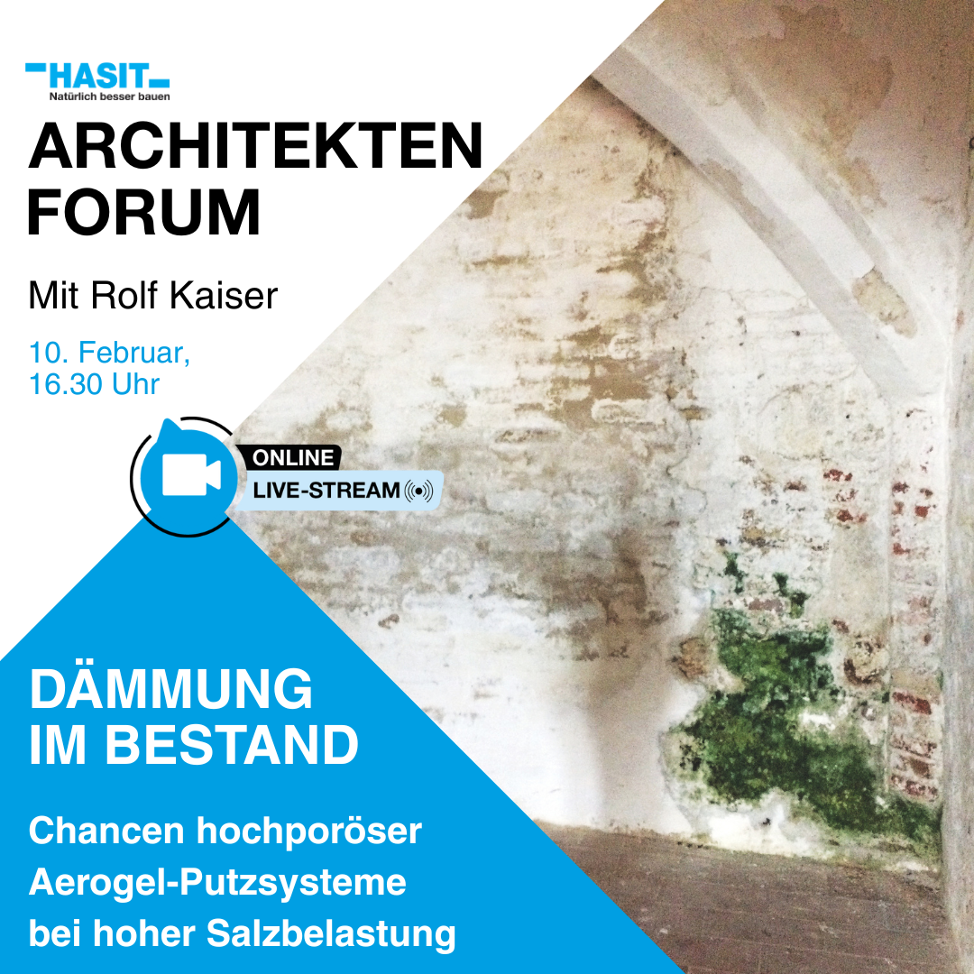 Salz- und feuchtebelastetes Mauerwerk sanieren und energetisch verbessern? Unser Aerogel-Dämmputz zeigt im Langzeittest, was möglich ist – live im Architekturforum.