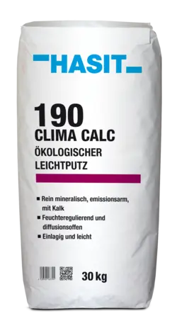 Entdecken Sie den HASIT 190 CLIMA CALC, einen ökologischen Leichtputz, der unübertroffene Qualität und Ästhetik mit einfacher und schneller Anwendung vereint. Ideal für mineralische Untergründe wie Ziegel und Porenbeton bietet er ein ansprechendes Filzbild dank fein abgestimmtem Jurakalk und kontrolliertem Abbinden.